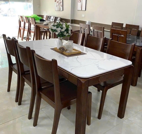 Bộ Bàn Ăn 6 Ghế Mặt Đá – Gỗ Tự Nhiên 100%