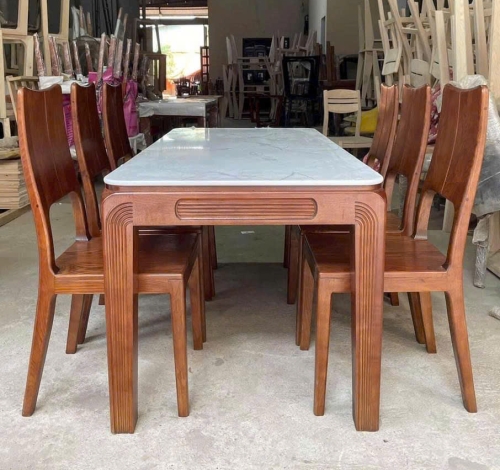 Bộ Bàn Ăn 6 Ghế Mặt Đá – Gỗ Tự Nhiên 100%