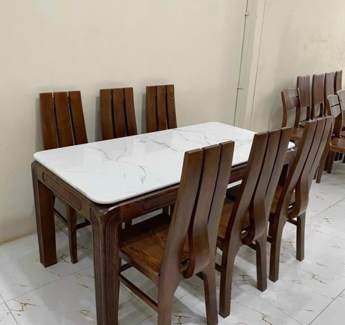 Bộ Bàn Ăn 6 Ghế Mặt Đá – Gỗ Tự Nhiên 100%