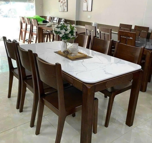 Bộ Bàn Ăn 6 Ghế Mặt Đá – Gỗ Tự Nhiên 100% Cao Cấp