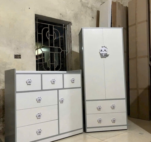 Tủ trẻ em họa tiết chân mèo có kệ để đồ