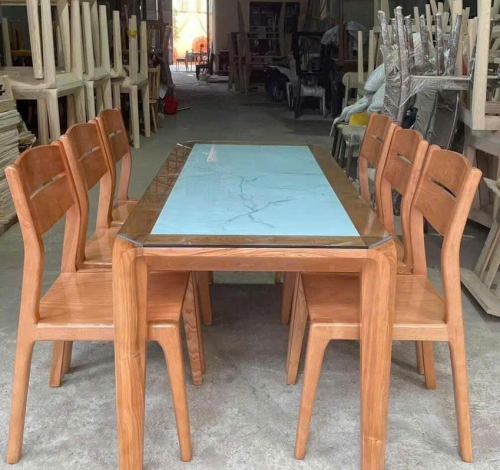 Bộ Bàn Ăn 6 Ghế Mặt Đá – Gỗ Tự Nhiên 100%