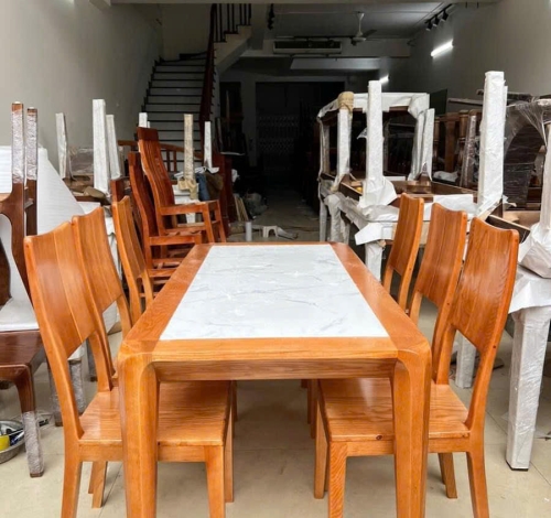 Bộ Bàn Ăn Gỗ Tự Nhiên 6 Ghế Mặt Đá Cao Cấp