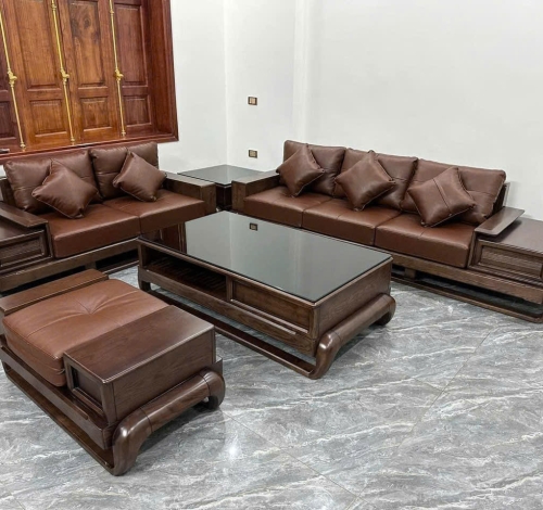 Bộ sofa gỗ hiện đại - Đệm ngồi và tựa lưng bọc da cao cấp