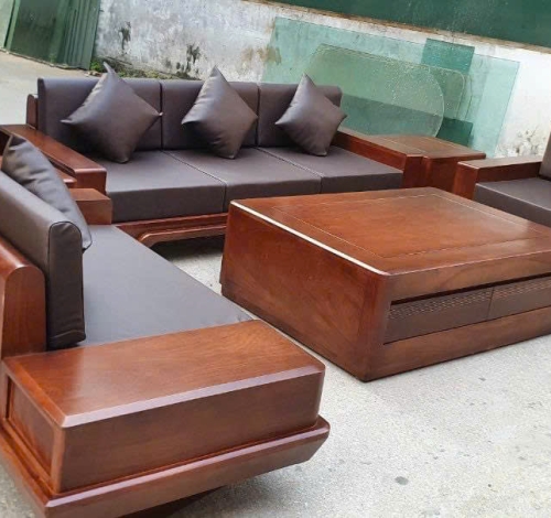 Bộ sofa gỗ hiện đại - Đệm ngồi và tựa lưng bọc da cao cấp