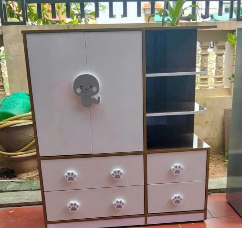 Tủ trẻ em họa tiết chân mèo có kệ để đồ