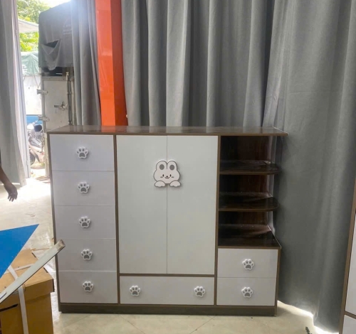 Tủ trẻ em họa tiết chân mèo có kệ để đồ